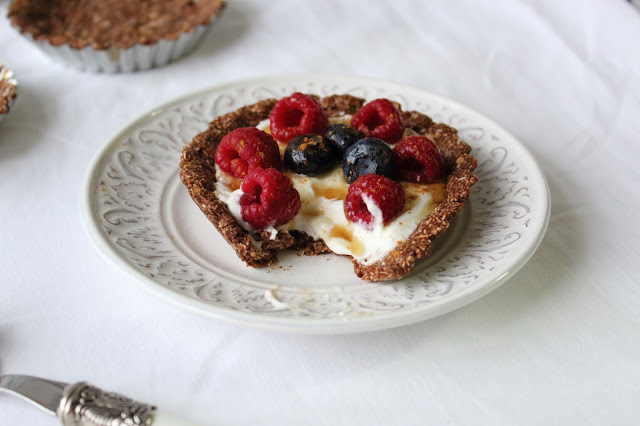 Podem decorar a gosto, com fruta, iogurte, queijo quark, frutos secos, sementes, manteiga de amendoim, etc.